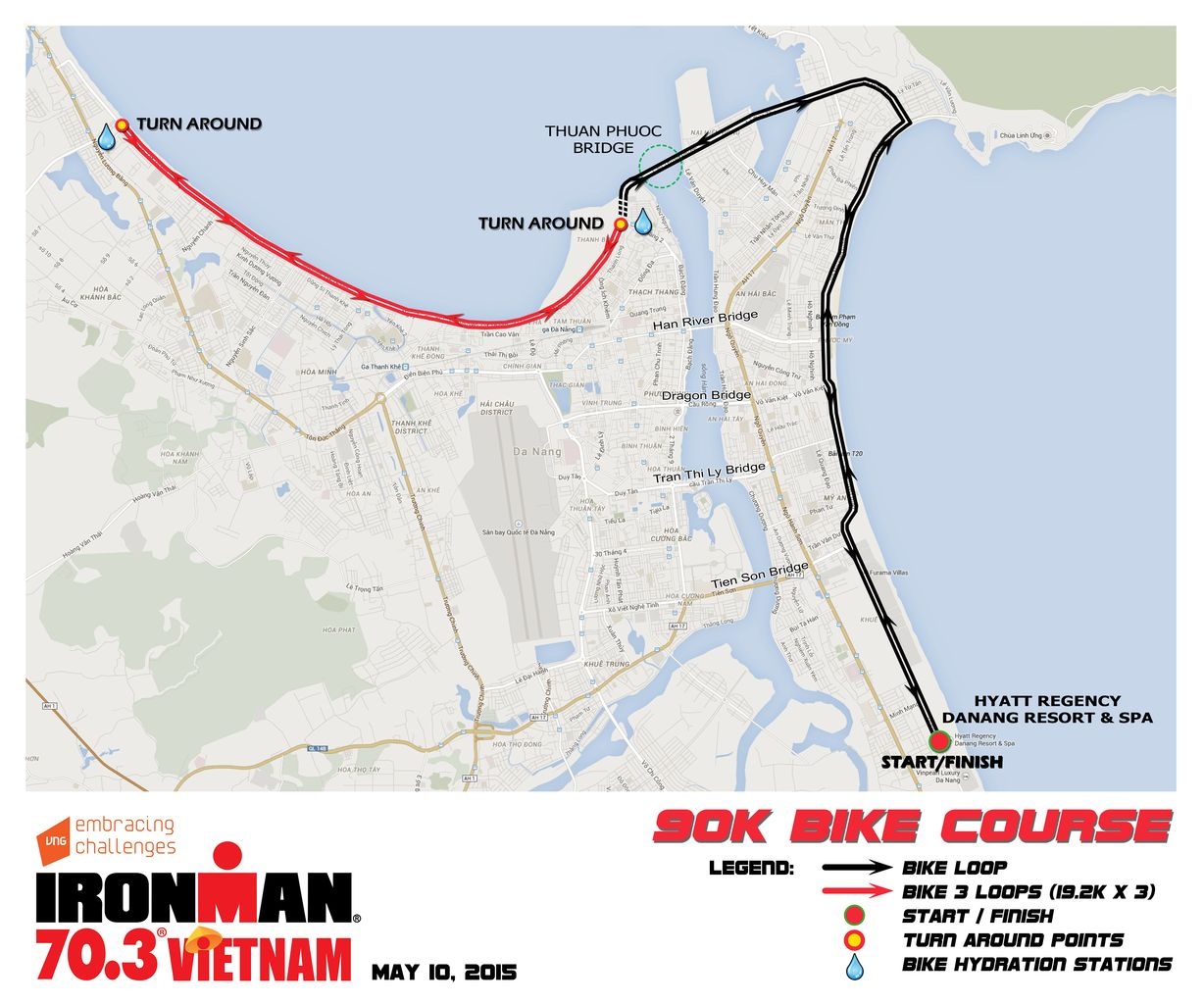 | Sơ đồ nội dung đua xe đạp của VNG Ironman 70.3 Việt Nam. Ảnh: ironman703vietnam.com |
