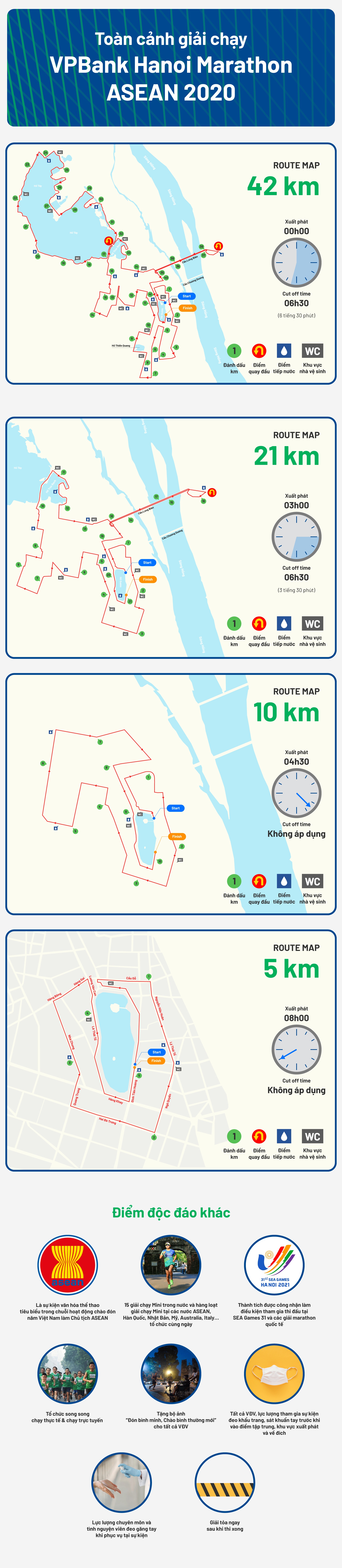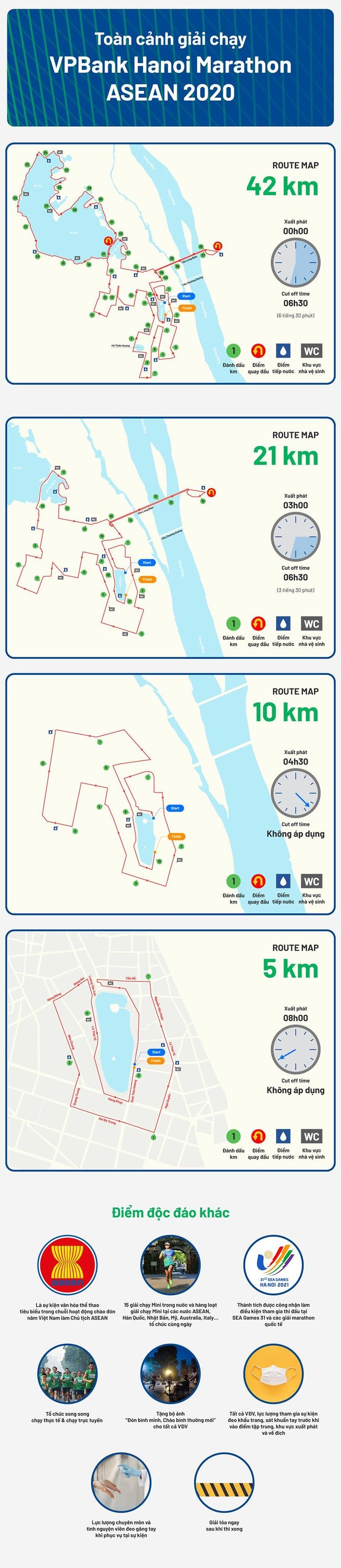 “VPBank Hanoi Marathon ASEAN 2020” diễn ra vào đêm 17 rạng sáng 18/10, đưa VĐV đi qua 6 quận Hà Nội với các tuyến đường, công trình kiến trúc gắn liền lịch sử phát triển thủ đô.
