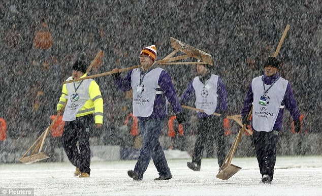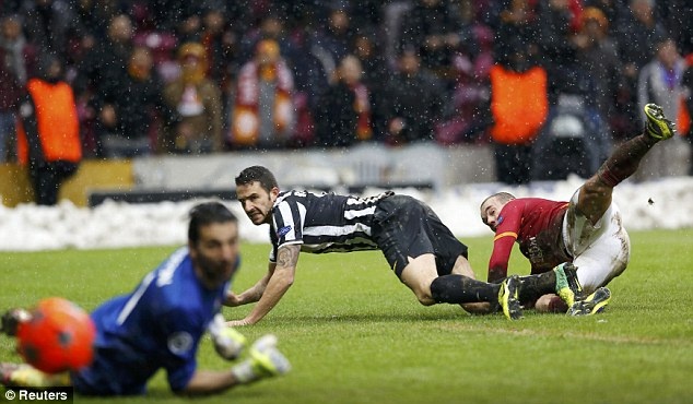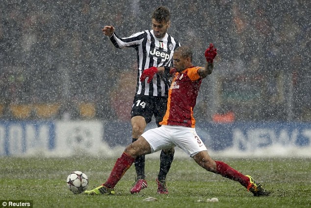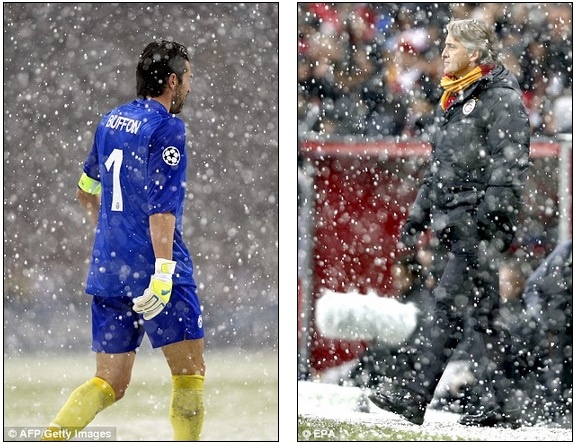 | Trận đấu giữa Galatasray và Juve diễn ra từ hôm qua. Nhưng do một cơn bão tuyết bất ngờ xảy ra. |