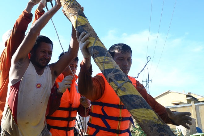 Vì thế đơn vị thi công đã dùng người nhái để định vị và tìm giải pháp thi công phù hợp. |