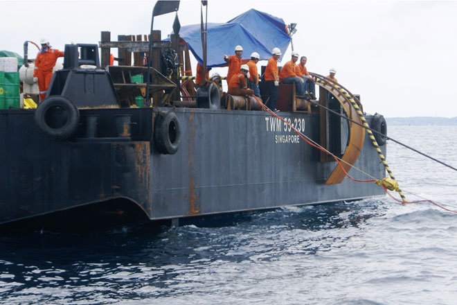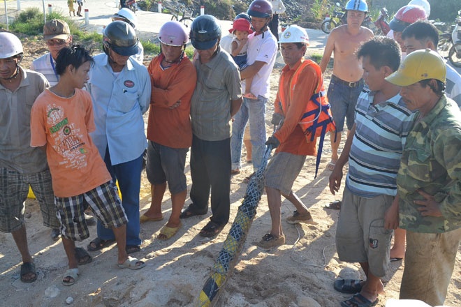 Ông Lê Anh Tuấn, Chỉ huy phó công trường kéo cáp ngầm ra đảo Lý Sơn thuộc Liên danh nhà thầu Prysmian – Thái Dương chia sẻ, việc thi công những mét cáp cuối cùng đấu nối với đảo Lý Sơn hết sức khó khăn do khu vực tiếp giáp có nhiều san hô và vỉa đá ngầm, cộng thêm mực nước cạn nên tàu kéo cáp không thể thi công. |