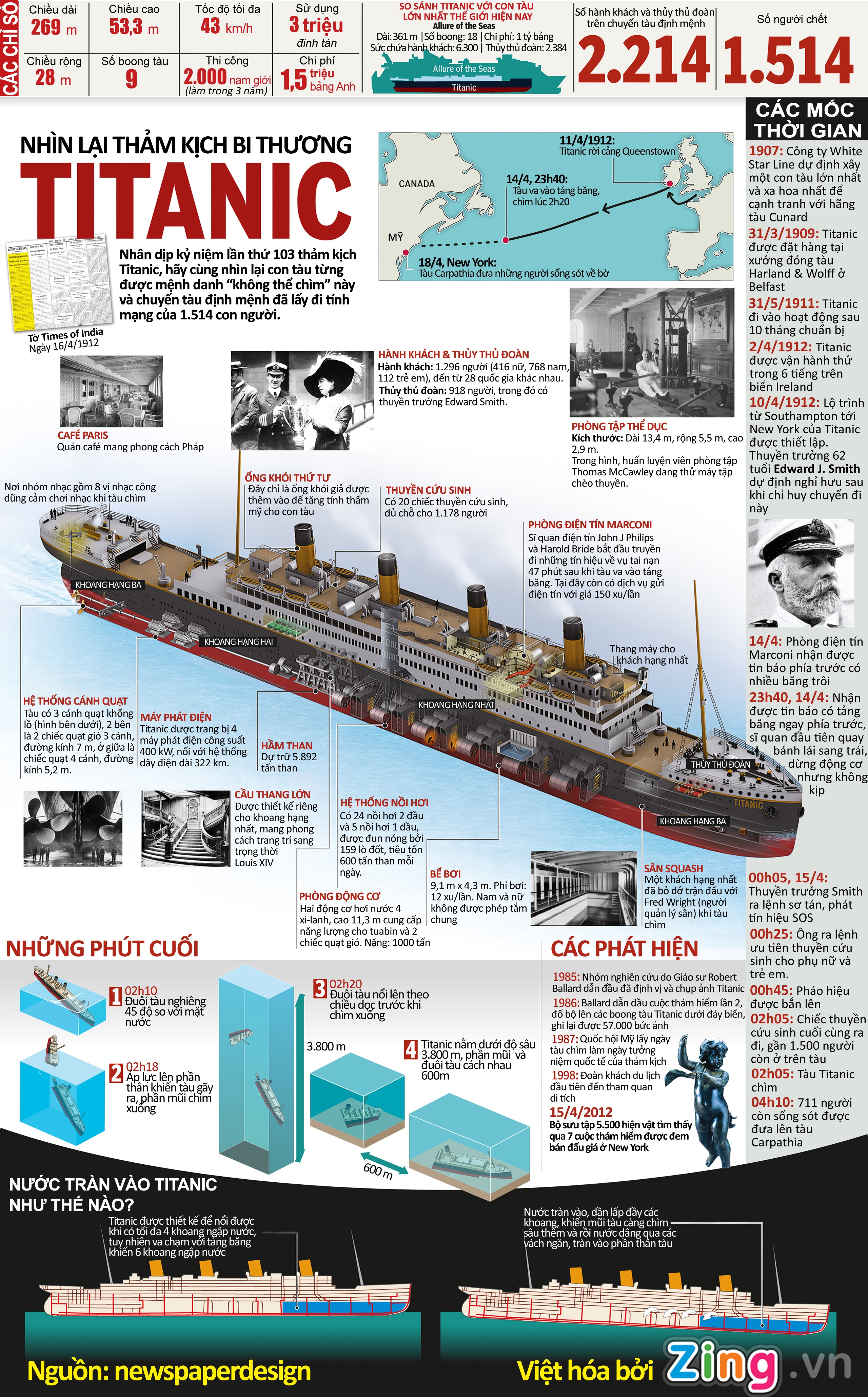 Chưa đầy 3 tiếng, 1.514 người trong tổng số 2.214 hành khách và thủy thủ đoàn bỏ mạng cùng tàu Titanic trong chuyến ra khơi đầu tiên.