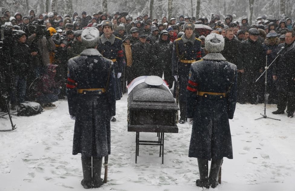 | Tang lễ phi công điều khiển chiếc Su-24 bị Không quân Thổ Nhĩ Kỳ bắn rơi. Ảnh: Reuters |