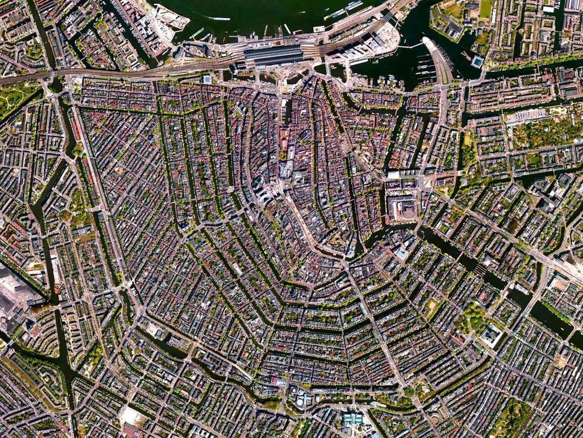Hệ thống kênh của thành phố Amsterdam (Hà Lan) khi nhìn từ trên cao. Trong nhiều thế kỷ qua, những kênh đào ở đây được sử dụng cho hoạt động quốc phòng, quản lý nguồn nước và vận chuyển.