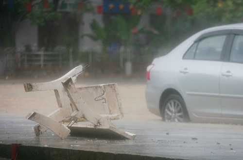 Ngoài đường nhiều ghế đá cũng bị thổi bay. |