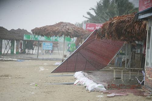 Nhiều chòi và ô tại khu vực Bãi Cháy bị gió xô đổ. |