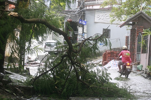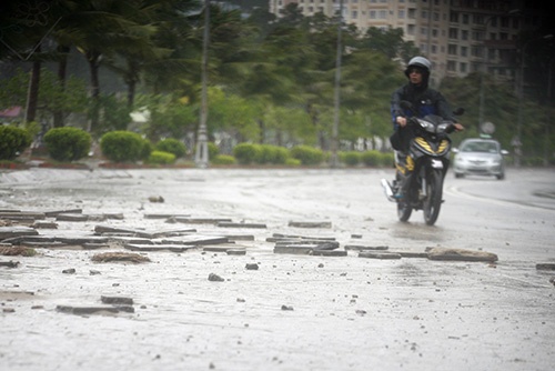 Tính đến cuối giờ chiều 3/8, khu vực TP Hạ Long (Quảng Ninh) có nhiều cây xanh bị đổ, vỉa hè và một số đê kè bị sạt lở do ảnh hưởng của bão số 5 (Jebi).