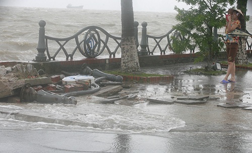 Một số đê kè tại Bãi Cháy cũng bị xô đổ. |