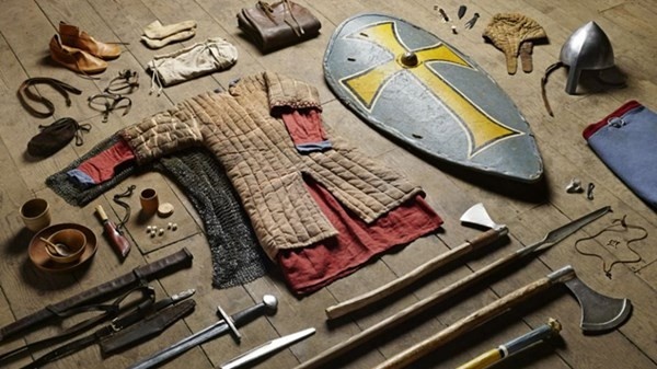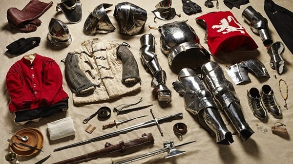 Bộ quân trang năm 1485 thuộc về một người lính York trong trận Bosworth, bao gồm một đôi bốt dài, một chiếc mũ, một mũ sắt để bảo vệ mặt, một áo choàng và một bộ bao tay. Bộ giáp cho thấy các tấm kim loại lớn đã được lắp vào các bên để tránh việc binh lính bị tấn công từ hai bên hay khi quay lưng về phía đối thủ.