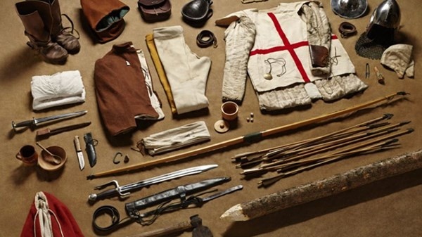 Một bộ quân trang dành cho lính bắn cung trong trận Agincourt năm 1415. Trong trận đánh này, các binh lính đã sử dụng chiến thuật chôn các cây gỗ xuống đất để đối phó với kỵ binh.