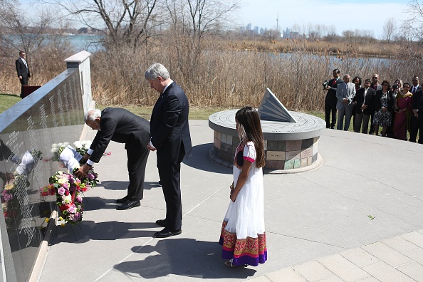 | Thủ tướng Ấn Độ Narenda Modi đặt vòng hoa tại nơi tưởng niệm hành khách chuyến bay 182 khi ông công du Canada tháng 4/2015. Ảnh: AFP |