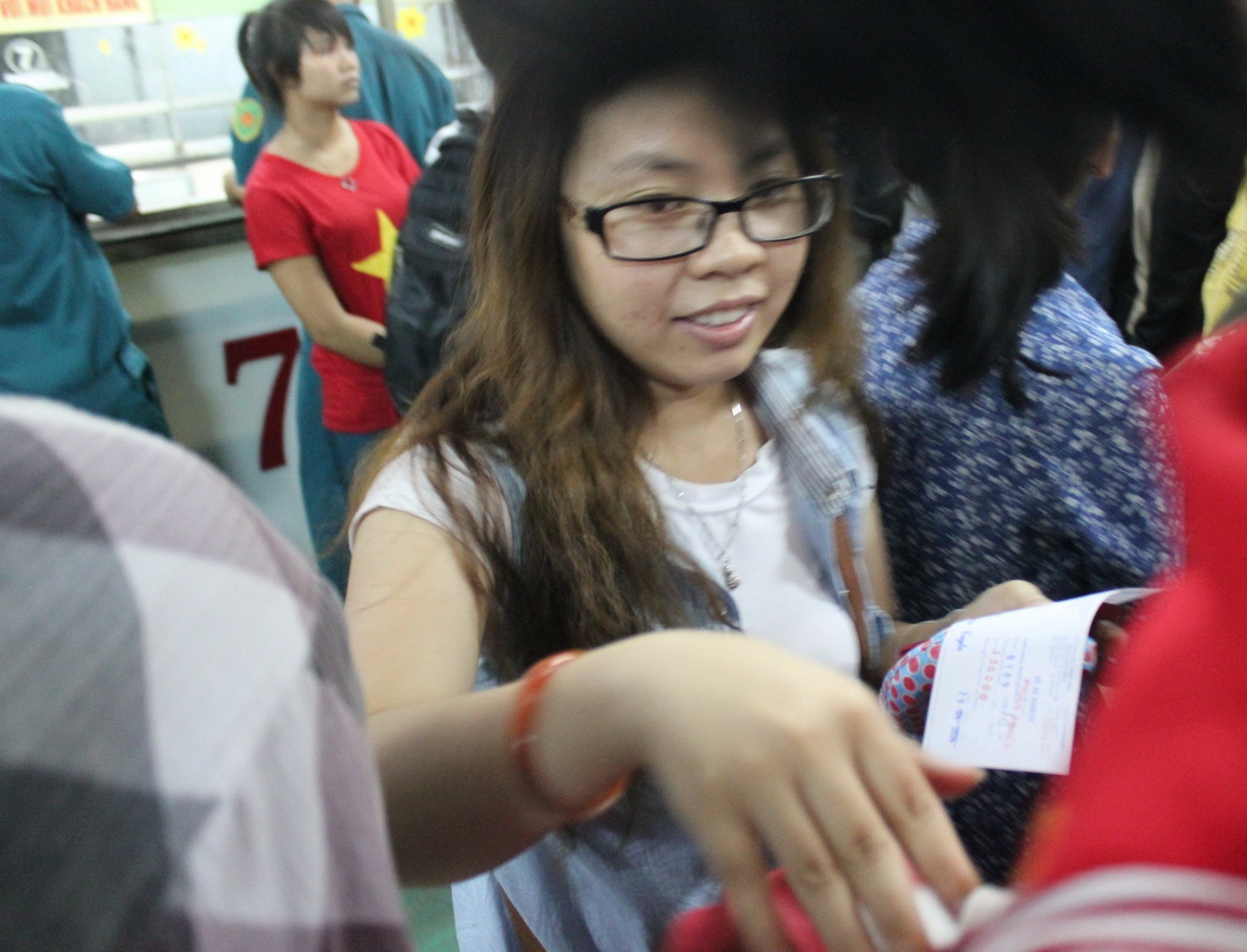 | Niềm vui của một sinh viên khi mua được vé sau hơn 1 giờ chen lấn. |