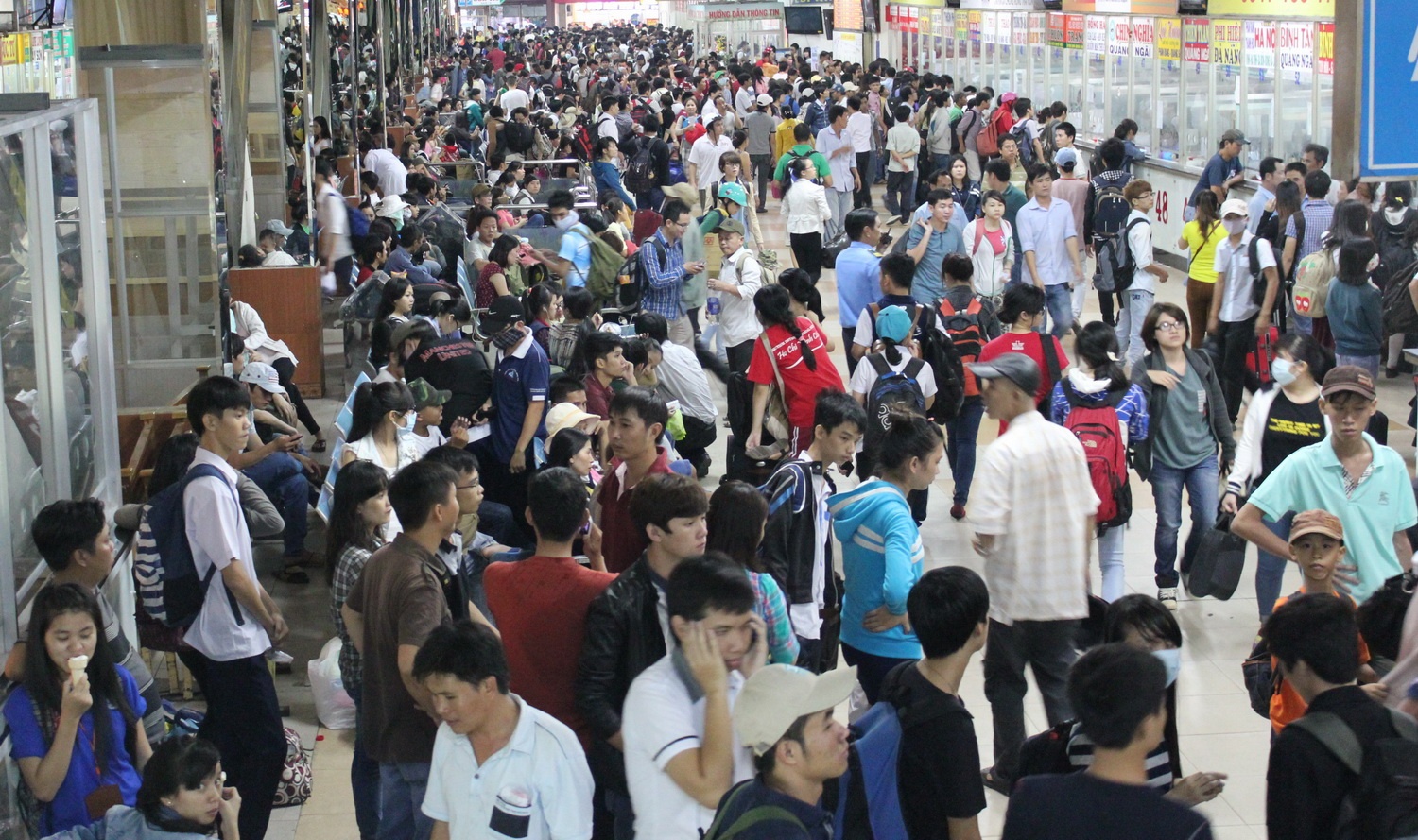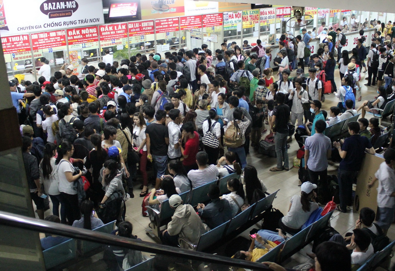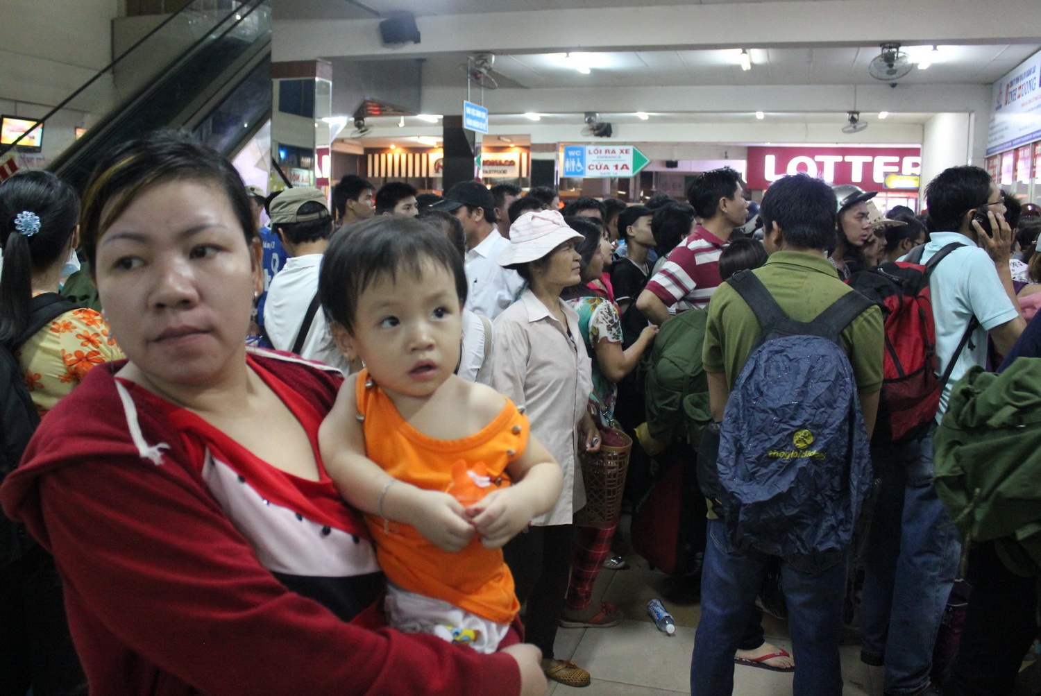 | Nhưng đến 20h tối, dòng người vẫn ùn ùn kéo về bến xe Miền Đông để mua vé về quê nghỉ lễ. |