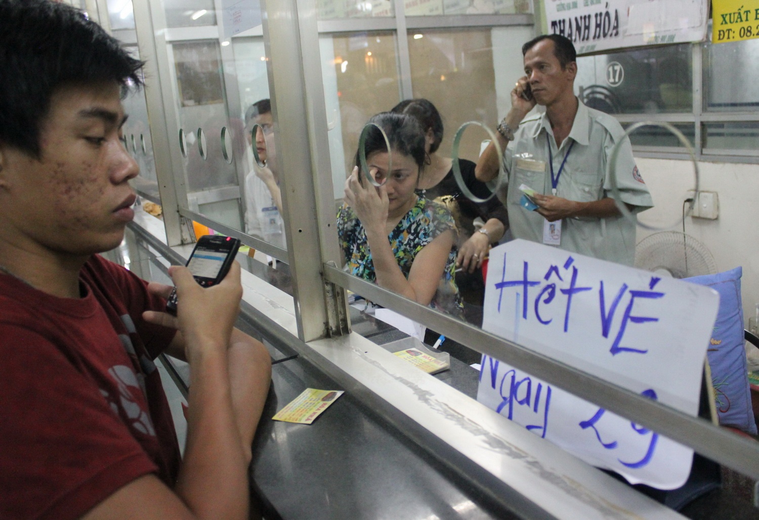| Một số điểm dán thông báo hết vé đi trong ngày 29/4. |