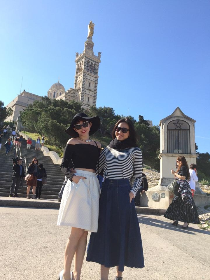 | Dương Mỹ Linh chụp ảnh kỷ niệm với Tóc Tiên tại Pháp. |