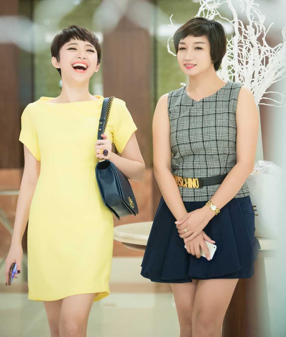 | Tóc Tiên vui vẻ khi gặp người bạn tại sự kiện. Chọn trang phục nhã nhặn, thanh lịch và kín đáo đi dự tiệc, cô được khen biết tiết chế trang phục sexy khi về nước. |