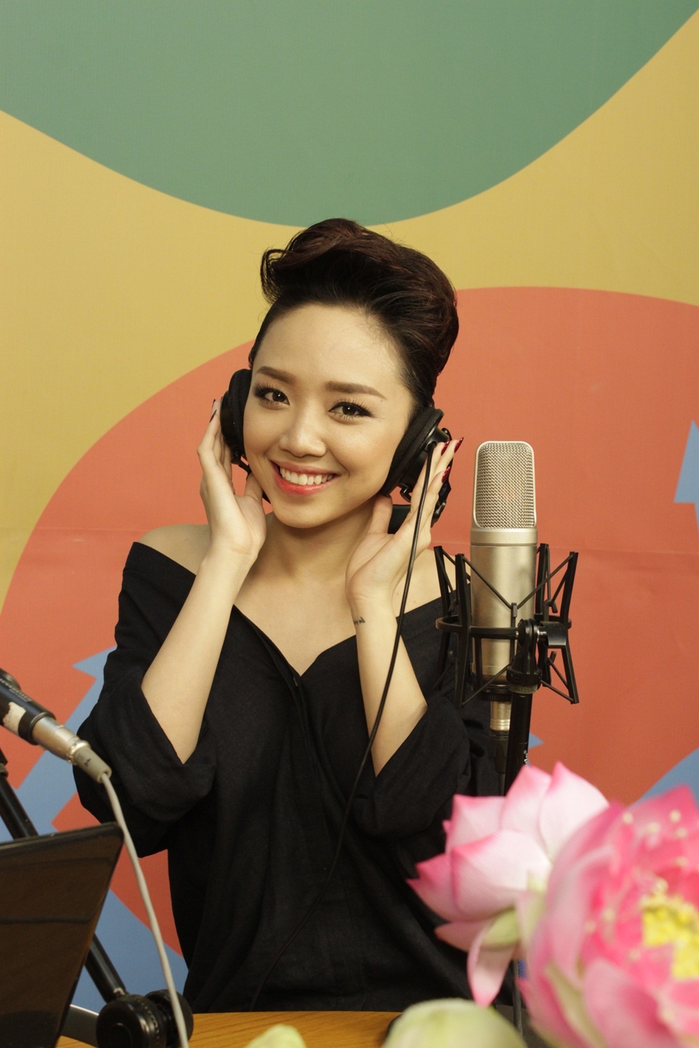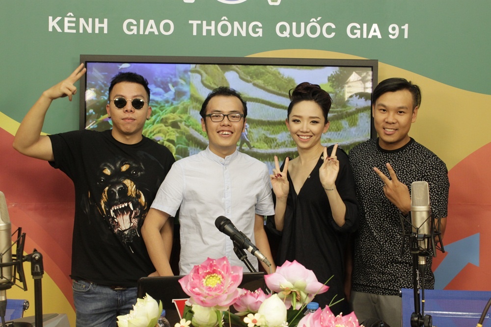 | Tóc Tiên trong buổi trò chuyện trên sóng phát thanh. |