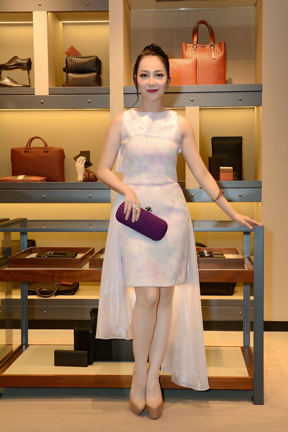 | Linh Nga là một trong những khách mời đặc biệt của sự kiện khai trương showroom thời trang của một thương hiệu nổi tiếng thế giới tại TP HCM, tối 27/3. "Chim công làng múa" nữ tính và quyến rũ trong trang phục của NTK Phương My. |