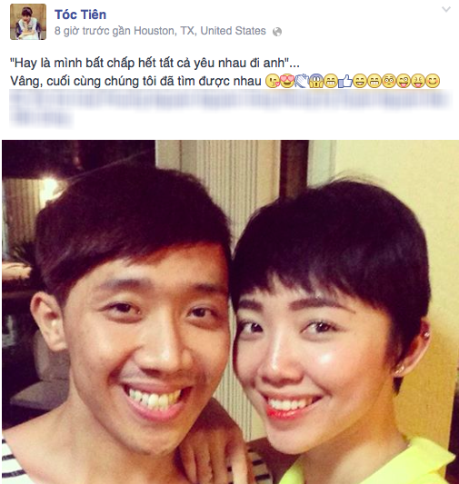 Trước đó, MC nổi tiếng của làng giải trí hải ngoại - Kỳ Duyên - đã ghép ảnh cặp đôi và không quên chú thích ở dưới: "Tóc Tiên và Trấn Thành nên lấy nhau, đẻ con sẽ giống cả cha lẫn mẹ". Vì thế, giọng ca hải ngoại hào hứng rủ Trấn Thành "bất chấp hết tất cả yêu nhau đi anh".