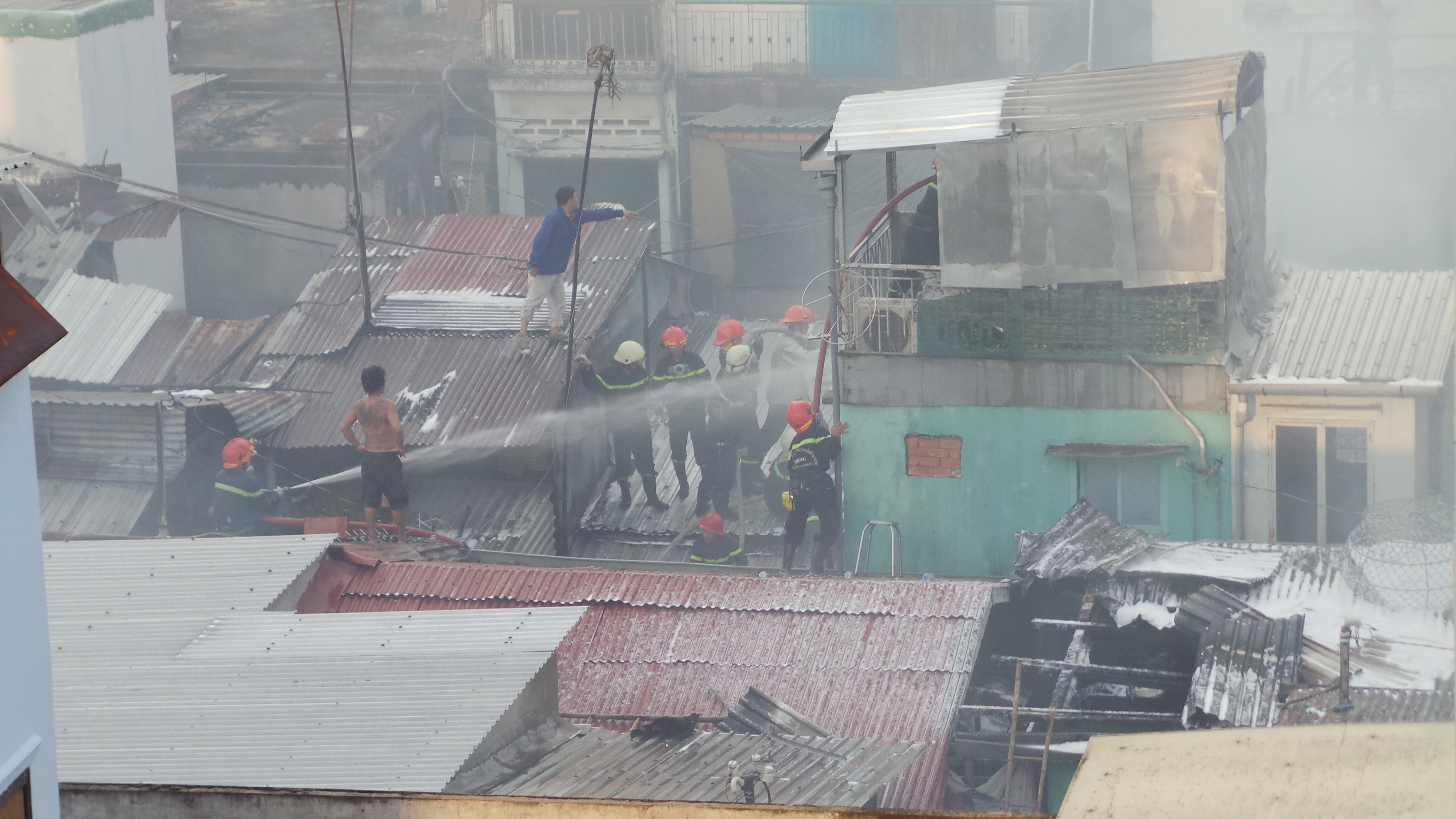 Theo đại tá Lê Tấn Bửu - Giám đốc Cảnh sát PCCC TP HCM, đơn vị điều động 25 xe chuyên dụng, 3 ca nô cùng 150 chiến sĩ đến hiện trường. Một xe thang phía đường Võ Văn Kiệt đưa vòi nước lên cao xịt vào đám cháy, nhiều đường ống khác được các chiến sĩ PCCC kéo vào các con hẻm ngoằn ngoèo ở hướng đường Yersin. Toàn bộ khu vực bị phong tỏa. Đến hơn 17h, vụ hỏa hoạn mới được khống chế.