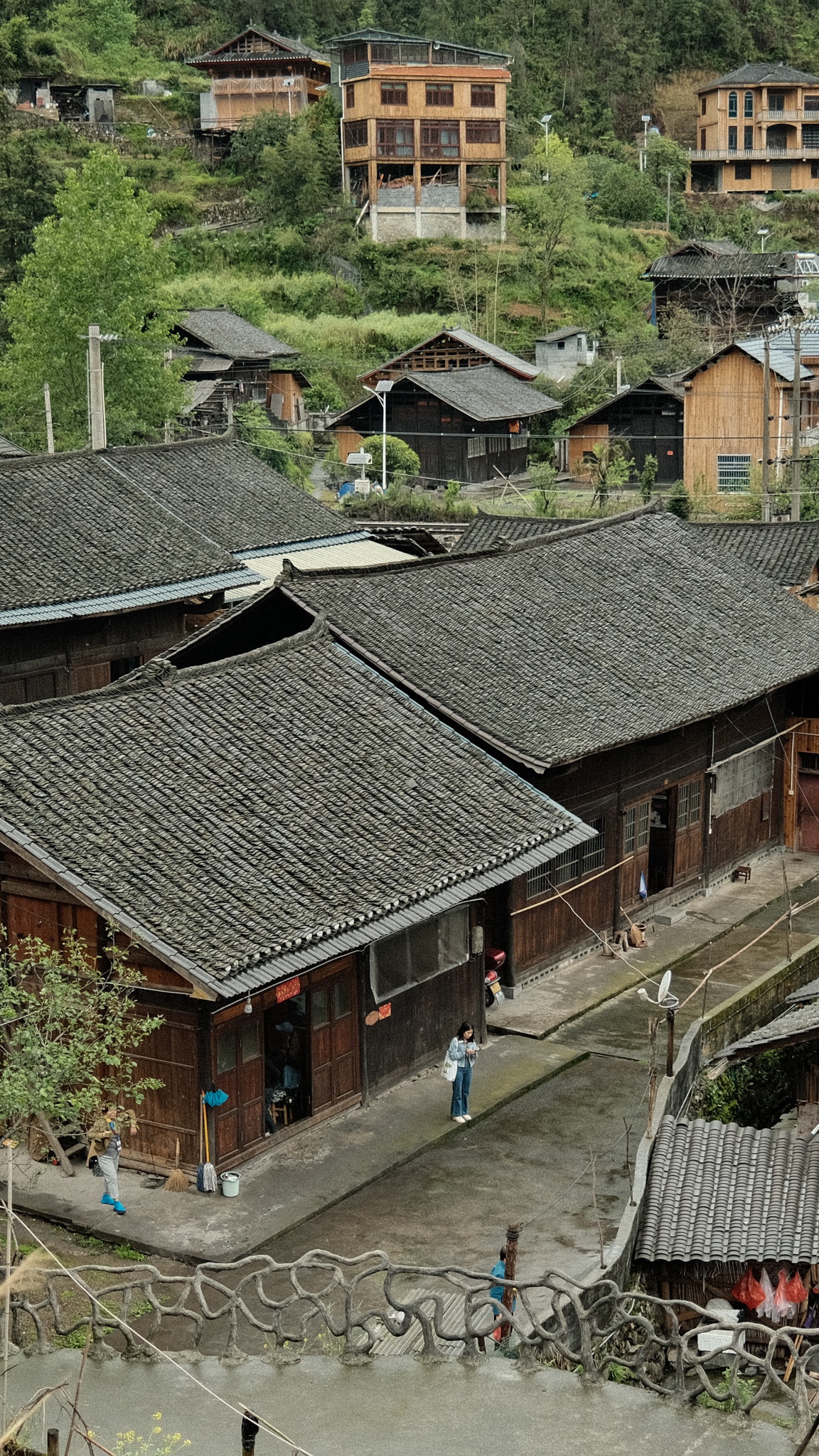 | Do địa hình núi cao, nhà của người Miêu được thiết kế đơn giản, chủ yếu bằng gỗ. Mái ngói âm dương màu xám đen, xếp chồng lên nhau. Đến đây, du khách Việt thường liên tưởng đến những bản làng của dân tộc Mông tại Hà Giang. |