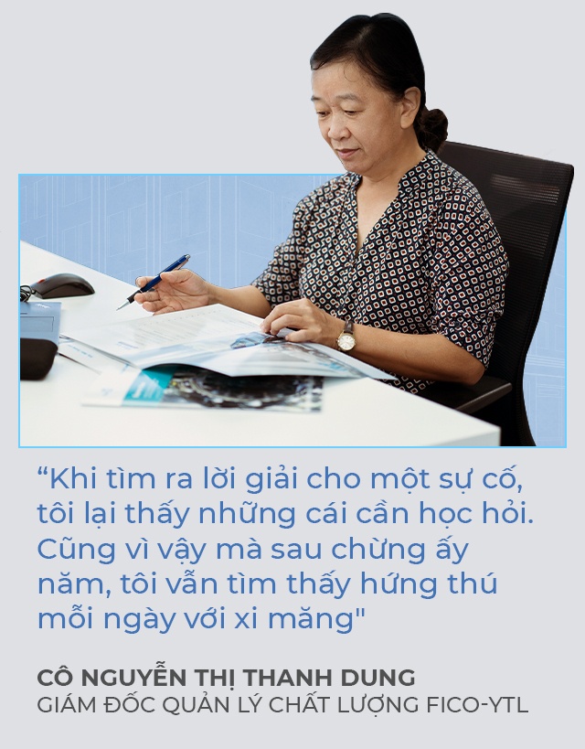 Hơn 2 thập kỷ làm trong ngành xi măng, cô Nguyễn Thị Thanh Dung - Giám đốc Quản lý chất lượng tại Công ty Xi măng Fico-YTL - vẫn giữ trọn đam mê công việc. Với cô, xi măng như mối duyên tiền định.