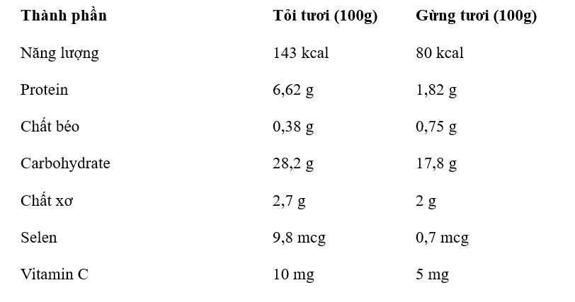 Có thể thấy, tỏi có hàm lượng protein, carbohydrate, vitamin C và selen cao hơn gừng. Tuy nhiên, giá trị dinh dưỡng không phải là yếu tố duy nhất quyết định tác động sinh học.
