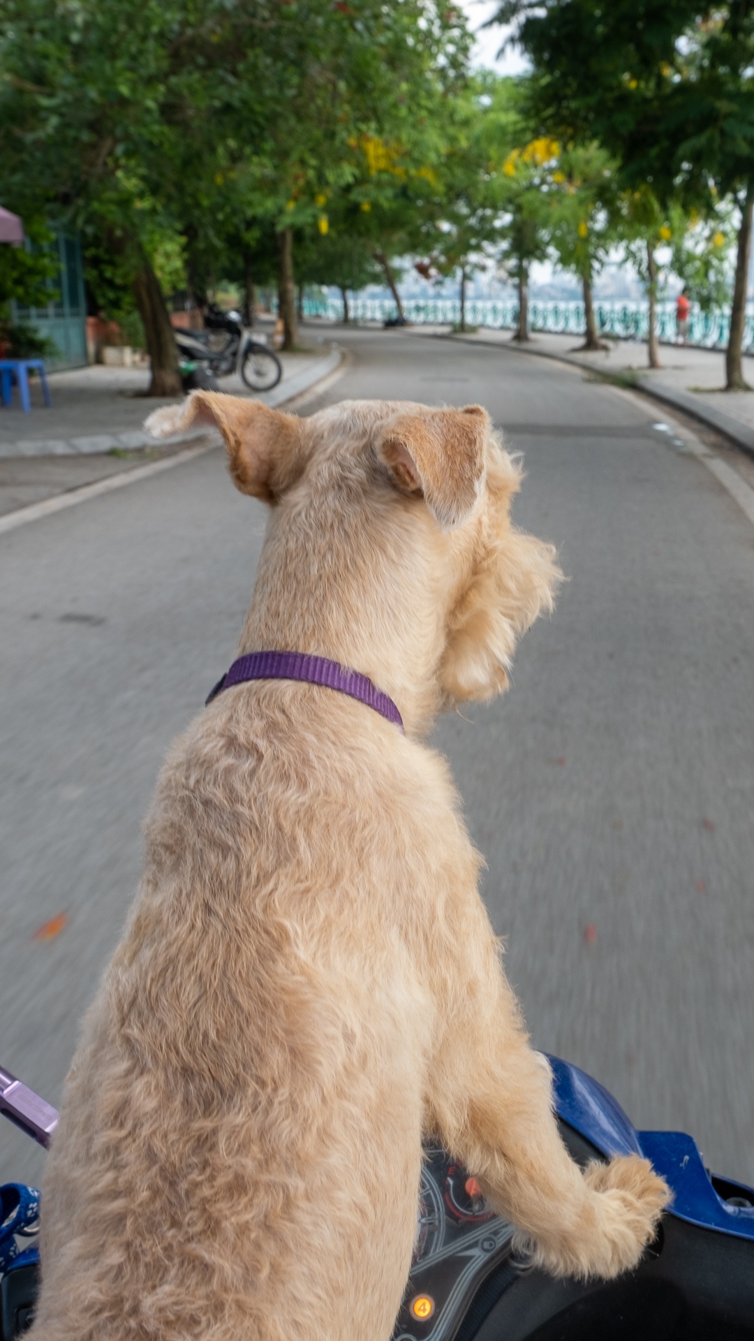 | Mỗi ngày, tôi dậy từ 4h30 để đi huấn luyện một chú chó ở Hà Đông, cách khoảng 20 km. Chú chó này tên là Jiro, chỉ có 3 chân, được một gia đình người nước ngoài nhận nuôi từ một trung tâm cứu hộ. Trước khi đón về, họ đã bàn bạc rất kĩ với tôi để Jiro có một môi trường và sức khoẻ tốt nhất. |
