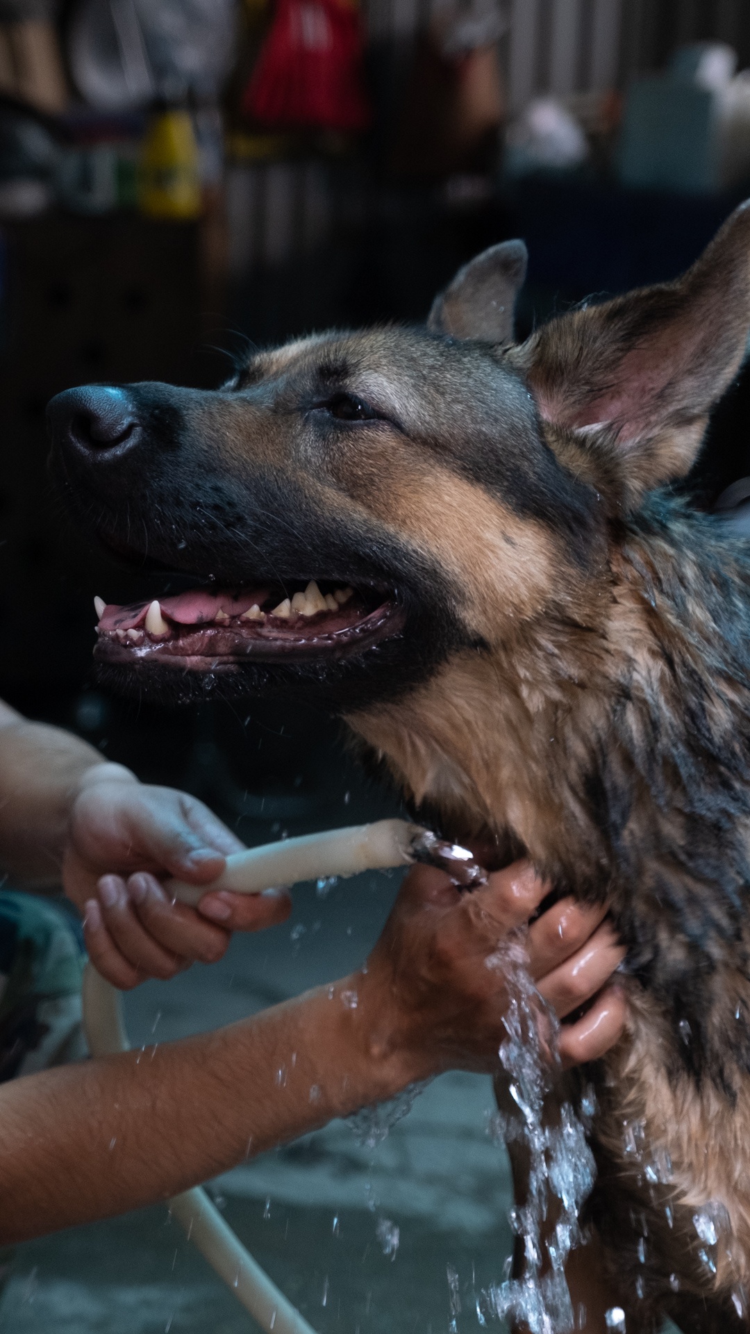 | Thời tiết dạo này nắng nóng, tôi cũng tranh thủ tắm rửa cho những chú chó dù mỗi phòng ở đều có điều hoà. |