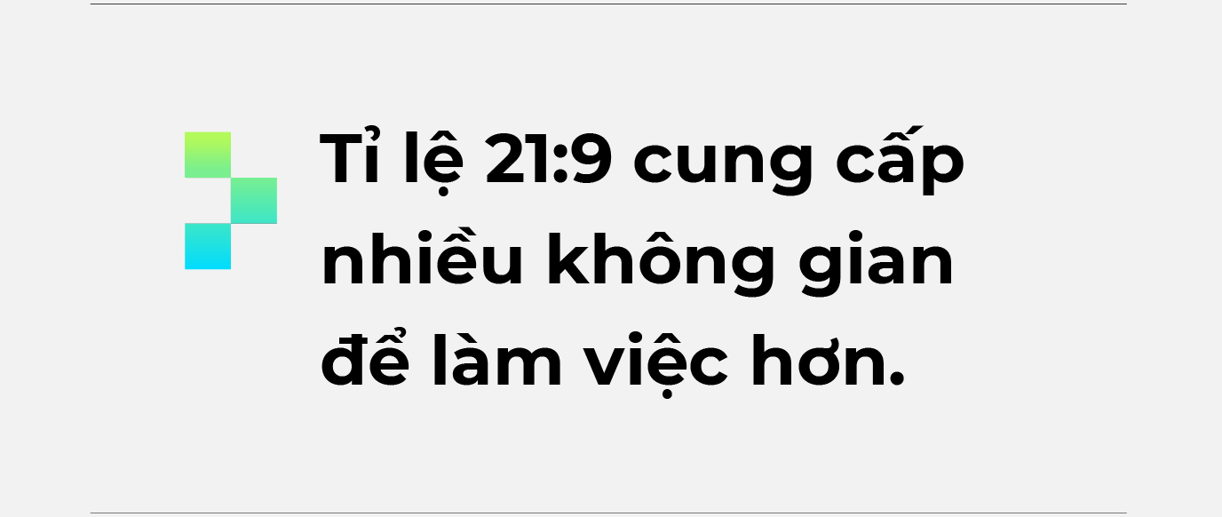 | Với màn hình mới có tỷ lệ 21:9, tôi có nhiều không gian hơn để xử lý các công việc và giải trí. |