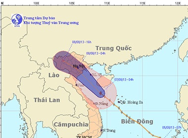 Dự báo trong 24 giờ tới, bão di chuyển chủ yếu theo hướng Tây Bắc, đi dọc theo ven biển các tỉnh Trung Bộ, mỗi giờ đi được khoảng 20 - 25km. Như vậy khoảng tối và đêm nay 7/8, vùng tâm bão có khả năng đi vào đất liền các tỉnh phía Đông Bắc Bộ và Thanh Hóa, suy yếu thành áp thấp nhiệt đới.