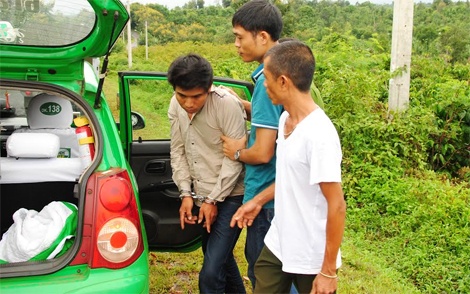 | Nhận định kẻ gây án có thể lái xe xuống TP. HCM bỏ trốn, phòng CSGT triển khai 3 tổ công tác gồm 9 chiến sỹ chốt chặt tại km733 trên quốc lộ 14. Khoảng 30 phút sau, tổ công tác do Thiếu tá Lưu Minh Thái, Phó đội trưởng Đội CSGT số 1 làm tổ trưởng cùng 2 chiến sỹ trong tổ phát hiện xe taxi có dấu hiệu khả nghi cũng như có những đặc điểm giống với miêu tả chiếc xe vừa bị cướp chạy với tốc độ cao nên đã ra hiệu lệnh dừng xe kiểm tra. |