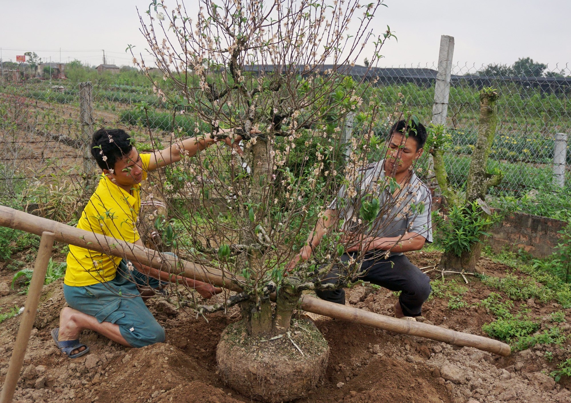 Ông Võ Đức Tiến (tập thể Mai Dịch, Hà Nội) tự mình chở gốc đào quý tới làng Nhật Tân nhờ tay nghệ nhân trồng đào chăm sóc để năm sau tiếp tục đánh về chơi Tết.