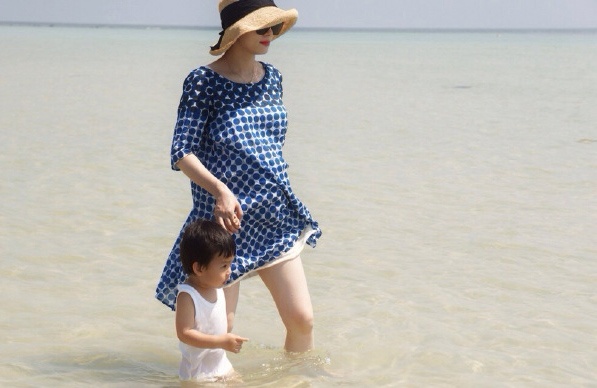 Ngoài ra, ngôi sao Chân Hoàn truyện còn đăng kèm một tấm ảnh gia đình trên bãi biển. Trong ảnh, Tôn Lệ mặc một chiếc váy suông để lộ rõ phần bụng được cho là đã có bầu ít nhất 5 tháng.