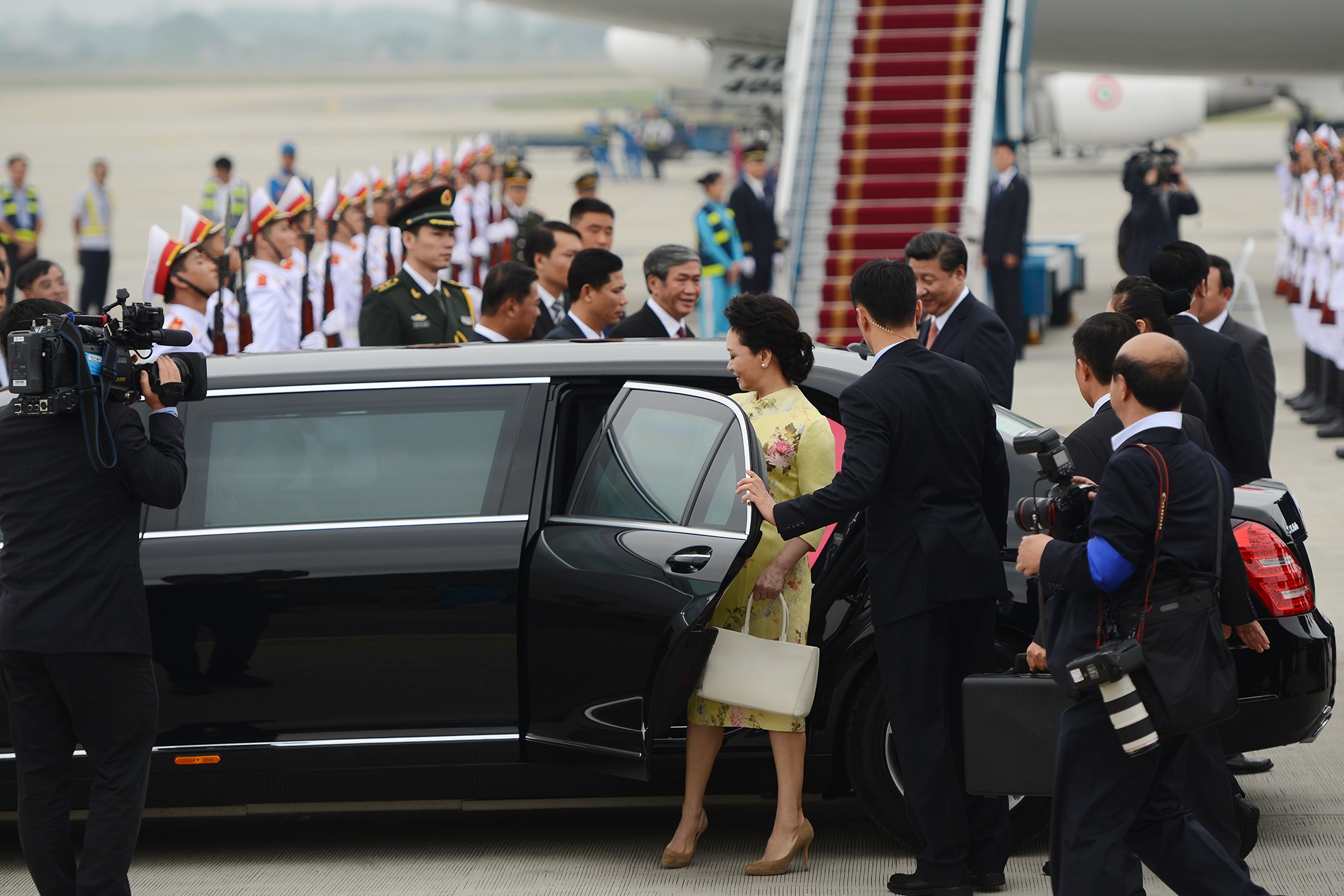 | Tổng bí thư, chủ tịch Tập Cận Bình và phu nhân bước lên xe để rời sân bay Nội Bài, chuẩn bị tham gia hàng loạt sự kiện quan trọng tại Việt Nam. |