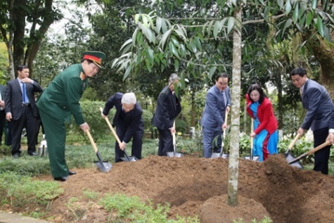 Tổng bí thư Nguyễn Phú Trọng và đoàn đã trồng cây lưu niệm trong khuôn viên Khu di tích K9.