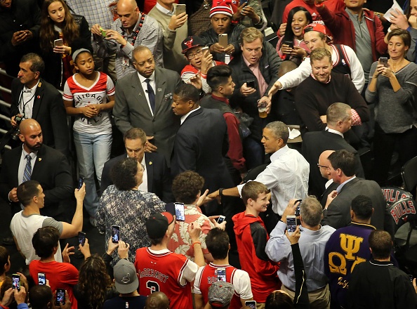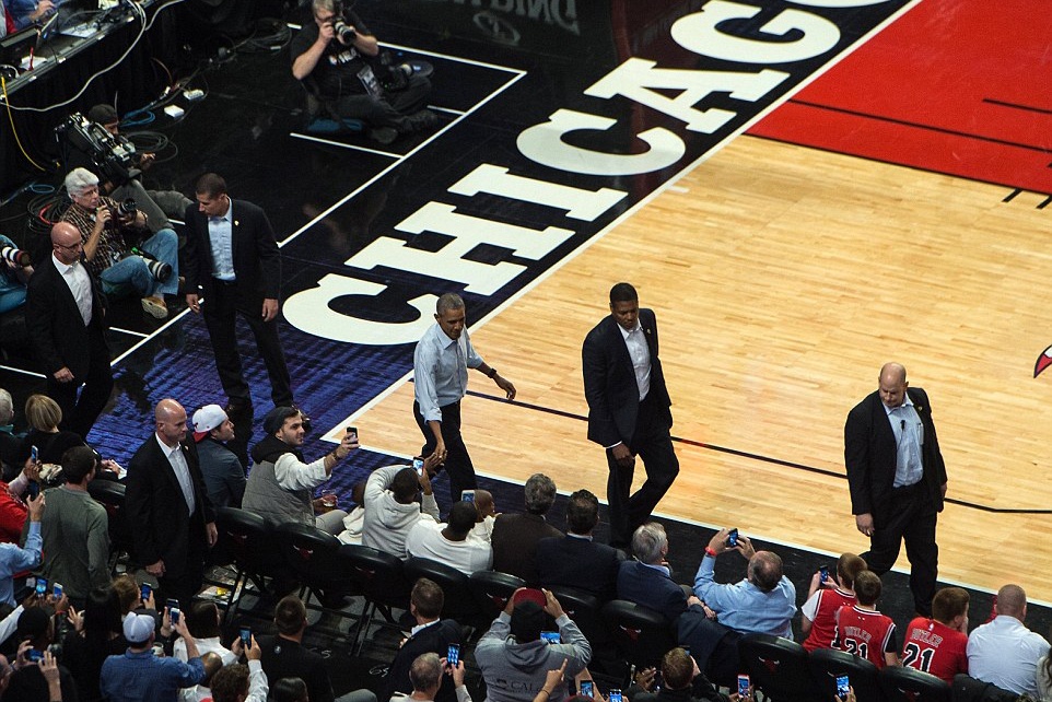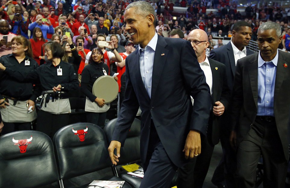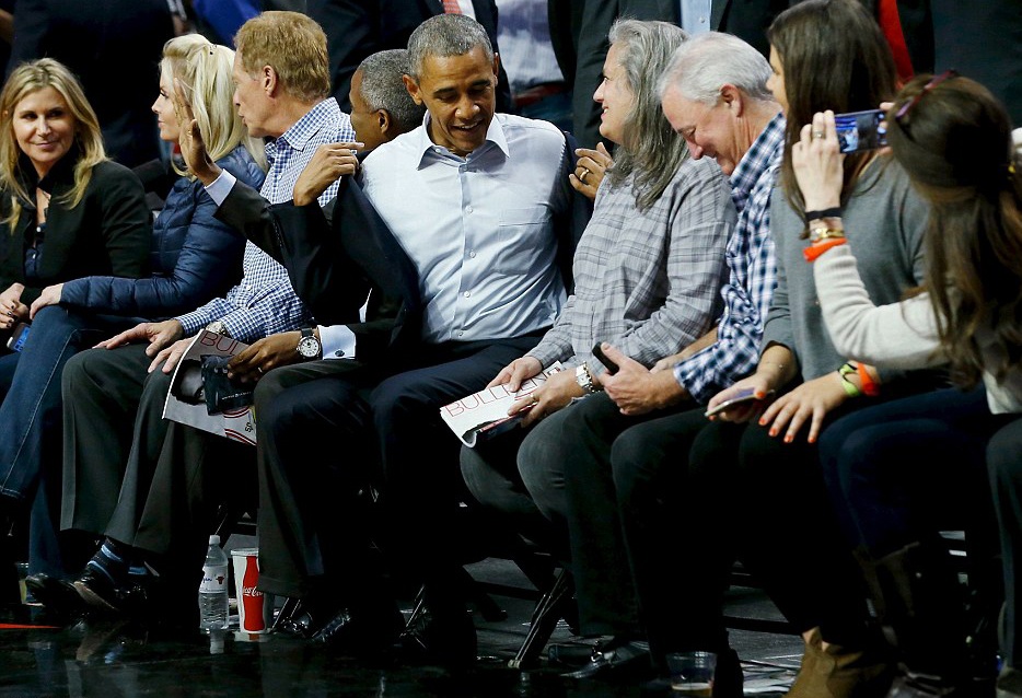 | Nhân chuyến công du tới Chicago để tham dự một hội nghị về an ninh, Tổng thống Barack Obama bất ngờ đến dự khán trận đấu khai mạc mùa giải NBA 2015/2016 giữa Chicago Bulls và Cleveland Cavaliers tối 27/10. |
