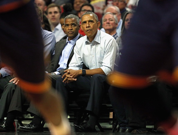| Người đứng đầu Nhà Trắng chăm chú theo dõi diễn biến cuộc so tài giữa Chicago Bulls - đội bóng ông yêu thích - và Cleveland Cavaliers. |