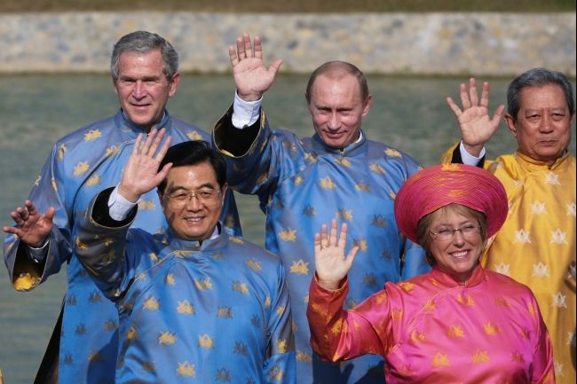 Tổng thống Nga Putin cùng các nguyên thủ quốc gia khác tham dự Hội nghị các nhà lãnh đạo kinh tế APEC 14. |