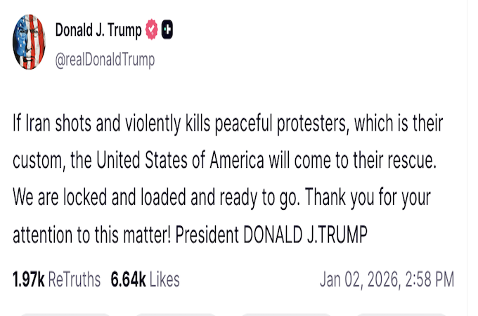 Tuyên bố của Tổng thống được đưa ra trong bối cảnh Iran đang hứng chịu một làn sóng biểu tình quy mô lớn, xuất phát từ cuộc khủng hoảng kinh tế kéo dài và sự biến động cực mạnh của đồng tiền quốc gia.