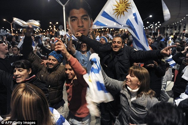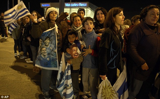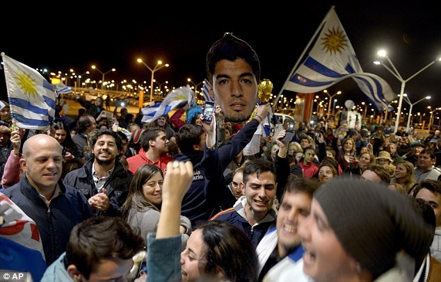 | Hàng vạn dân Uruguay đã đổ ra đường chào đón và bày tỏ ủng hộ ngôi sao số 1 đội tuyển Uruguay, |