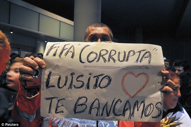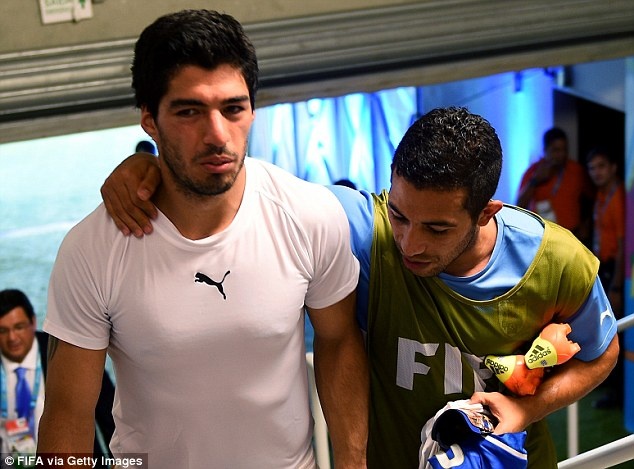 | Gương mặt rất buồn của Suarez sau khi nhận án phạt ở Natal (Brazil). |