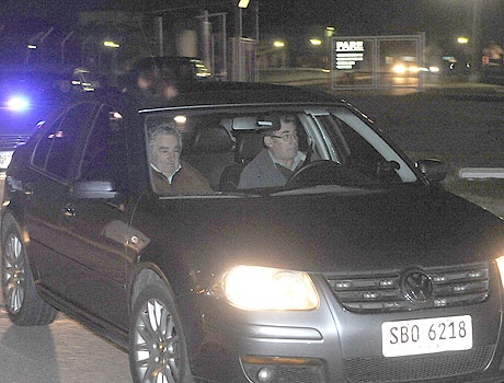 | Tổng thống Uruguay Jose Mujica (trái) ra tận sân bay tại Thủ đô Montevideo để đón Luis Suarez, chân sút vừa bị FIFA cho về nước sau vụ cắn vai trung vệ Giorgio Chiellini ở lượt trận cuối bảng D World Cup. |