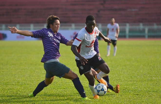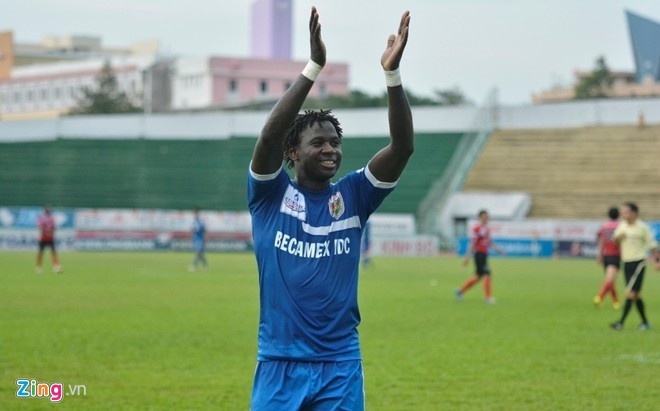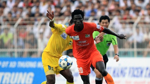 | Abass là cầu thủ ghi nhiều bàn nhất cho B.Bình Dương tại V.League với 10 pha lập công sau 1.560 phút thi đấu, trung bình 156 phút/bàn. Không chỉ giỏi săn bàn, chân sút này còn có nhiều đường kiến tạo để Công Vinh, Anh Đức, Trọng Hoàng lập công... giúp B.Bình Dương thẳng tiến đến ngôi vua ở V.League. Ảnh: Nguyễn Đăng. |