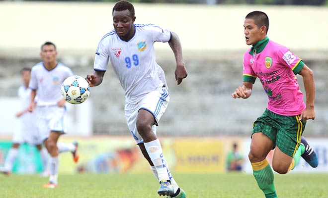| Tiền đạo Fraser được HLV Lê Huỳnh Đức đưa về SHB.Đà Nẵng trong giai đoạn 2. Anh hòa nhập khá nhanh, ghi 7 bàn thắng trong 11 trận ra sân. Cầu thủ người Jamaica mới thi đấu 927 phút, trung bình 132,4 phút anh ghi một bàn thắng. Ảnh: Thethaotv.vn. |