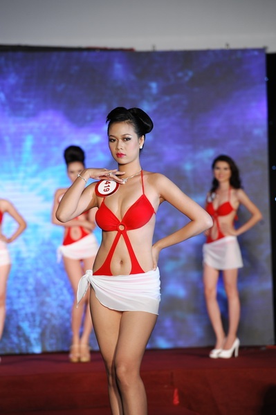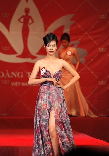 | Hình ảnh của cô trong cuộc thi Hoa hậu Việt Nam 2012. |