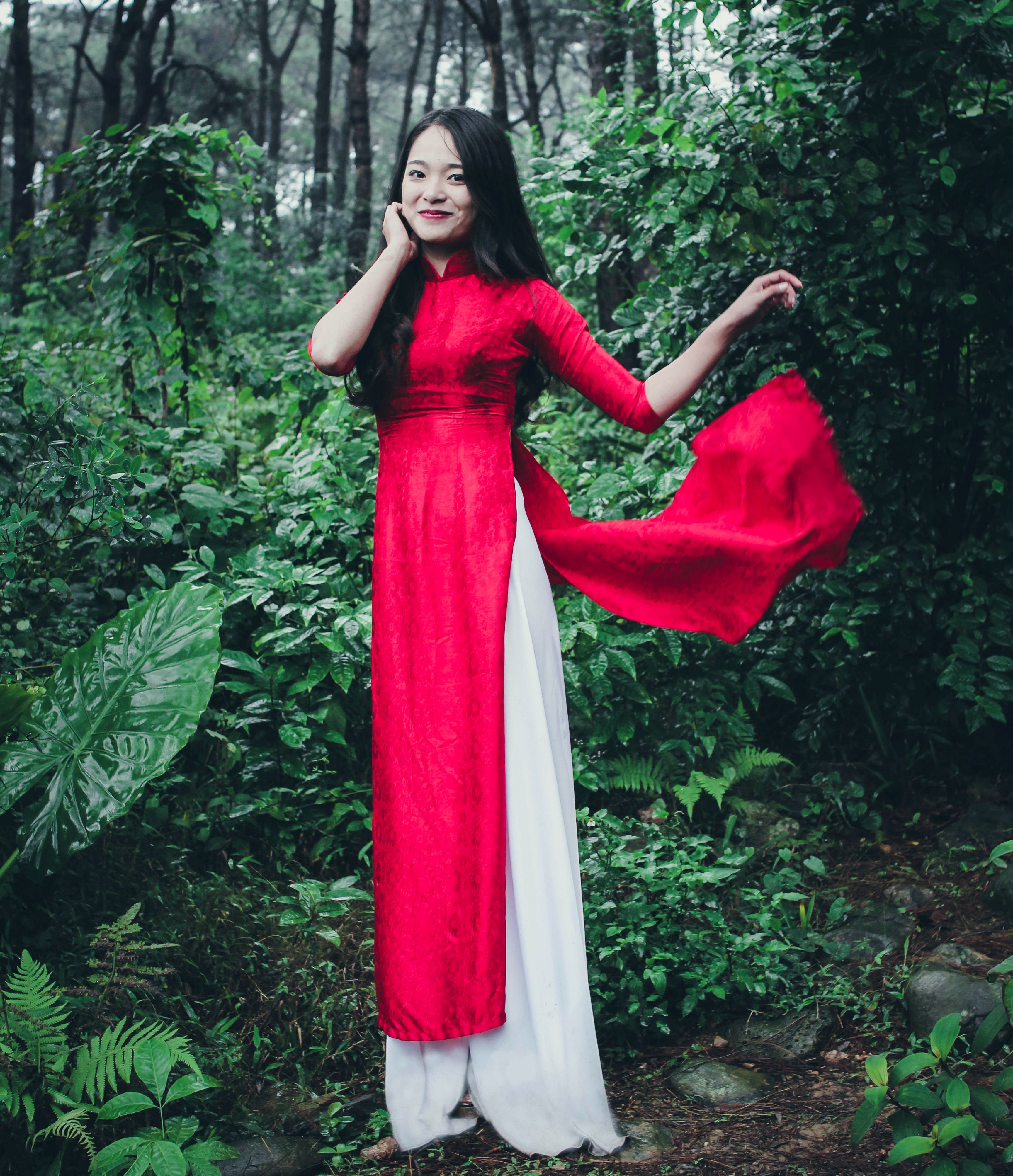 Nét hoa văn xanh tím tôn lên vẻ đẹp dịu dàng của Nguyễn Phương Linh, lớp Xã hội học K33. Nữ sinh có sở thích đi du lịch, viết báo, chụp ảnh phong cảnh. Bên cạnh đó, Phương Linh cũng là cô gái khéo léo khi thường xuyên tìm tòi, học cách nấu các món ăn lạ cho gia đình và bạn bè. |