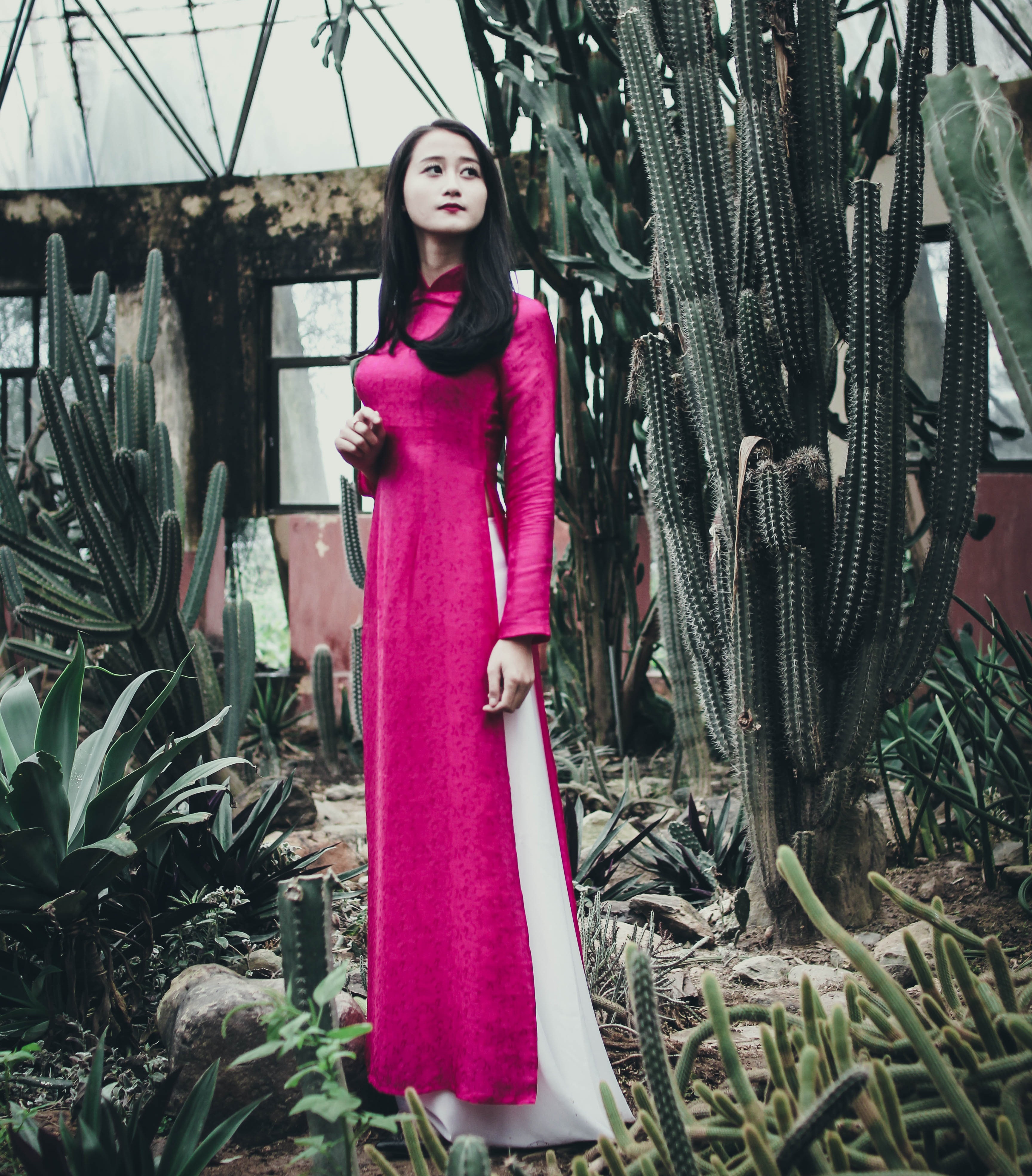 Với tính cách năng động, thích tham gia các hoạt động nghệ thuật, thiện nguyện... Vũ Phương Anh (PR 34) nổi bật lên sự cá tính trong chiếc áo dài màu hồng đậm. |