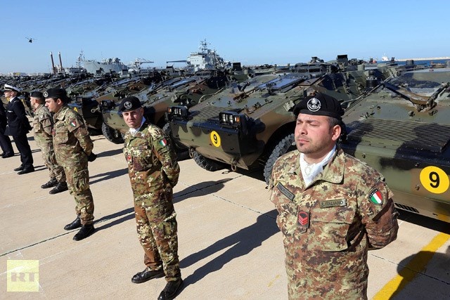 | Quân đội Italia tại căn cứ hải quân ở Libya tháng 2/2013. |