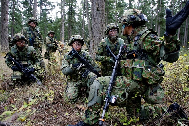 | Các binh sỹ Nhật Bản tham gia bài tập huấn luyện. |